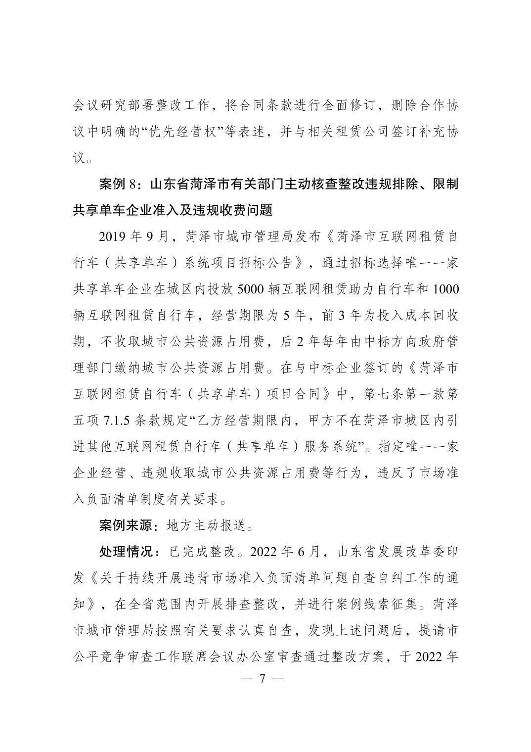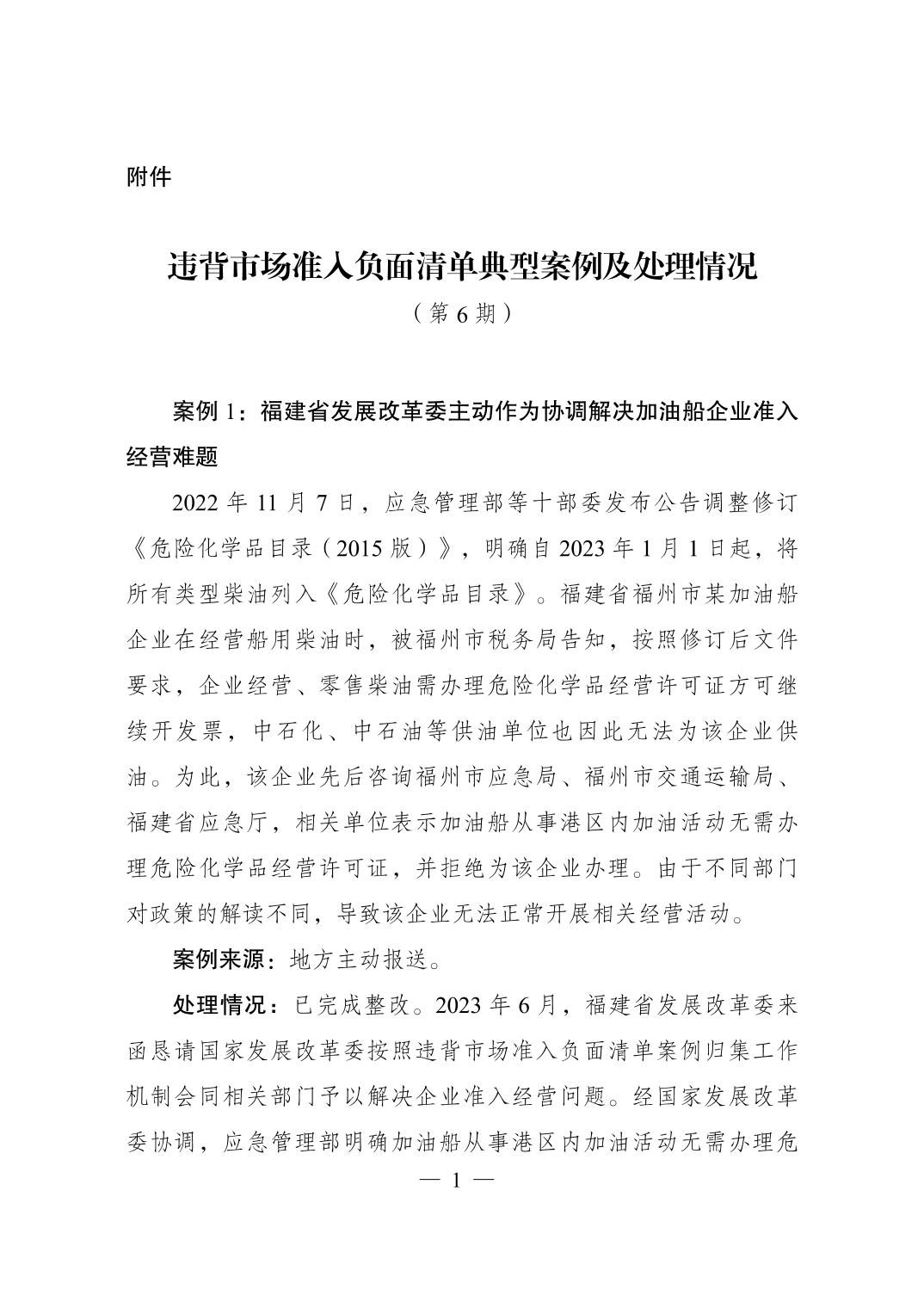 附件:违背市场准入负面清单典型案例及处理情况(第6期)