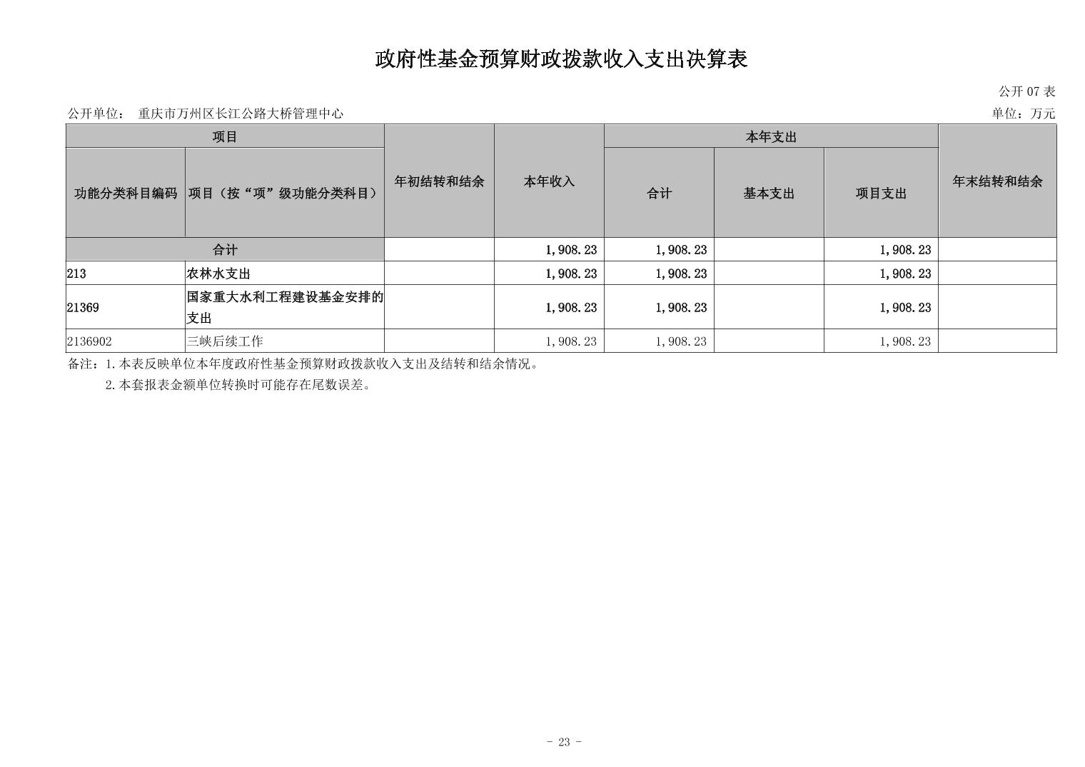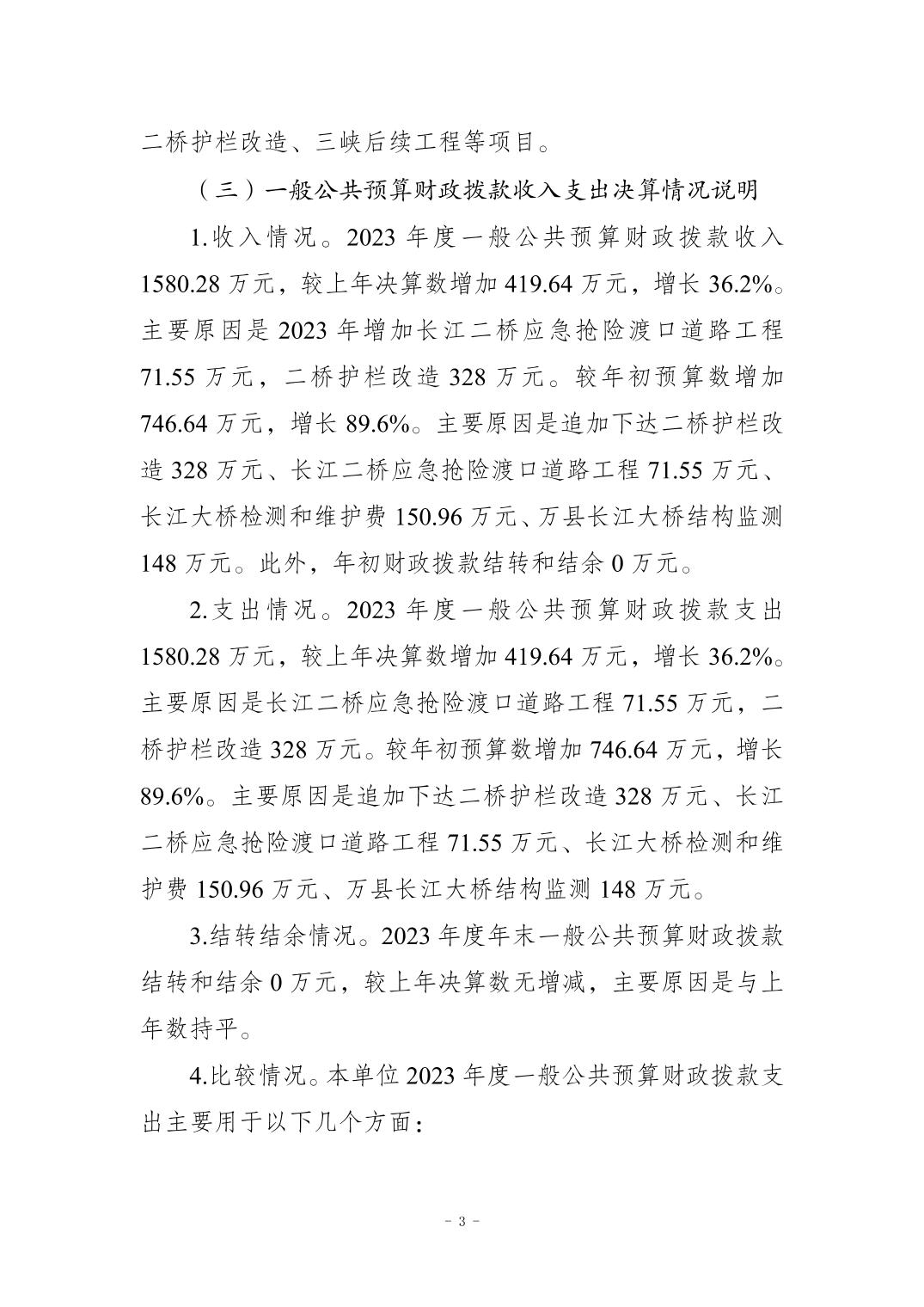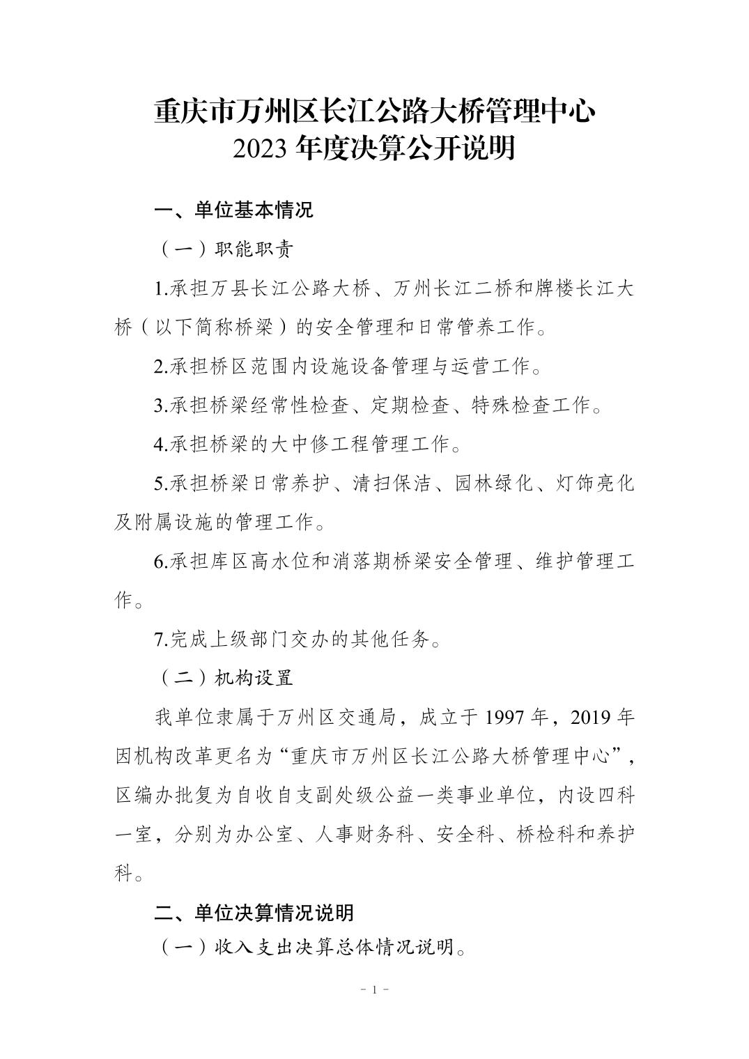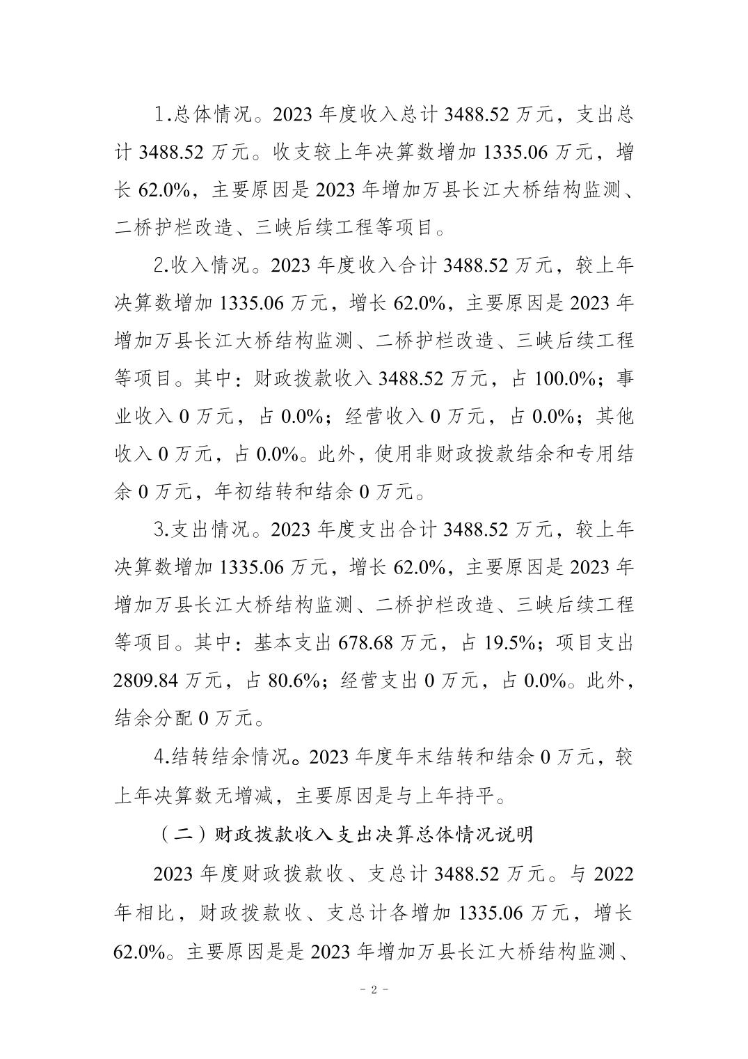 在线博彩平台 长江公路大桥管理中心2023年决算公开说明及公开报表