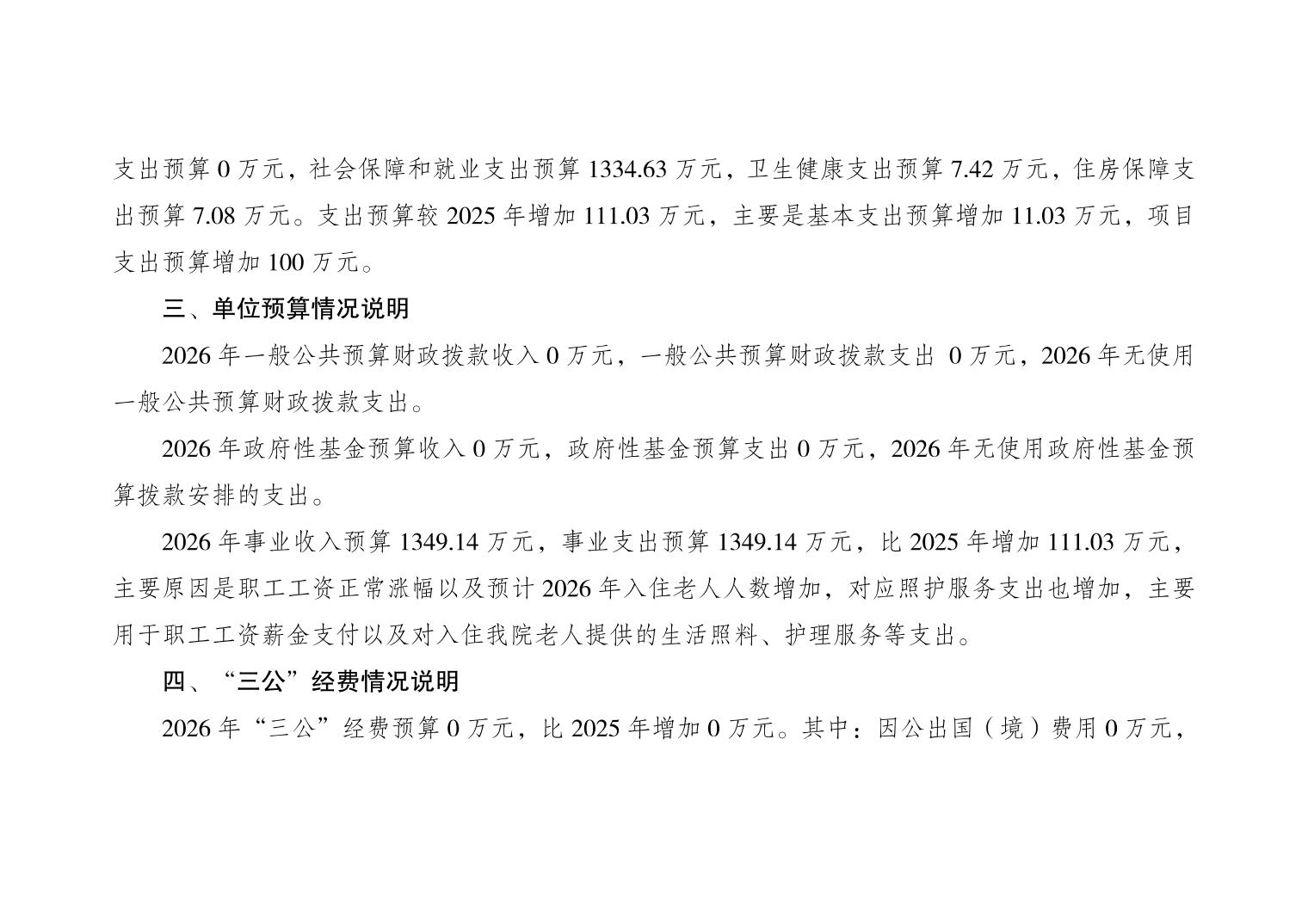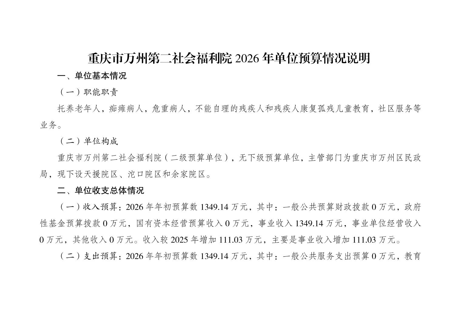 重庆市万州第二社会福利院2026年单位预算情况说明