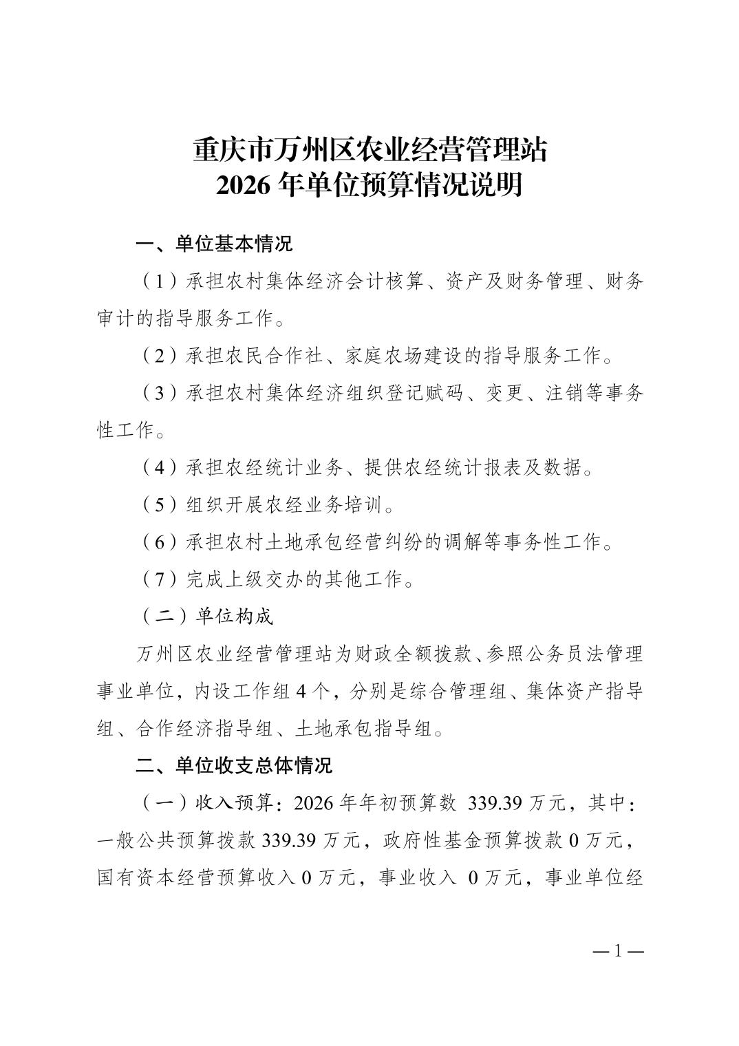 在线博彩平台 农业经营管理站2026年单位预算公开说明及预算附表