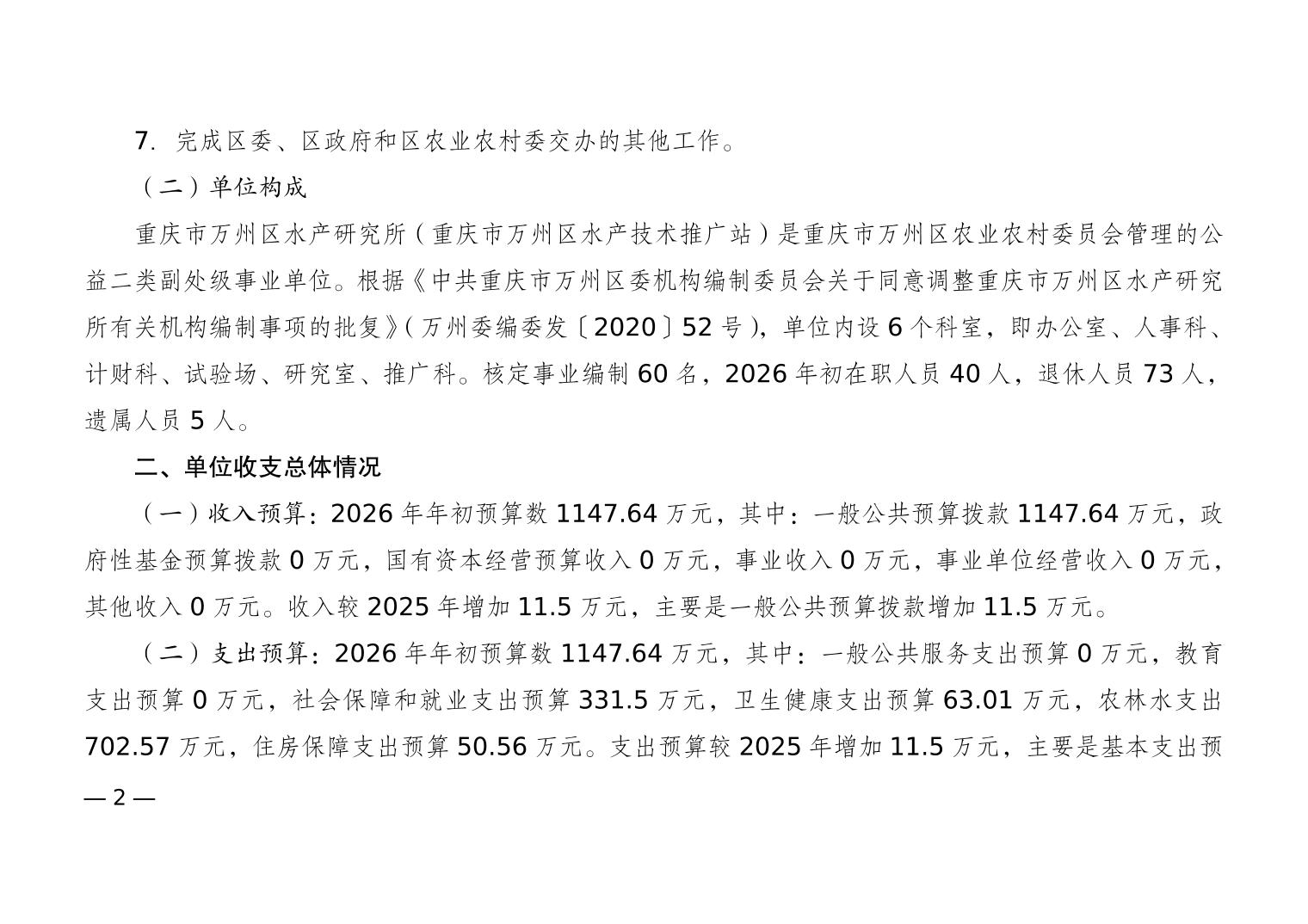 在线博彩平台 水产研究所(在线博彩平台 水产技术推广站)2026年单位预算公开说明及预算附表