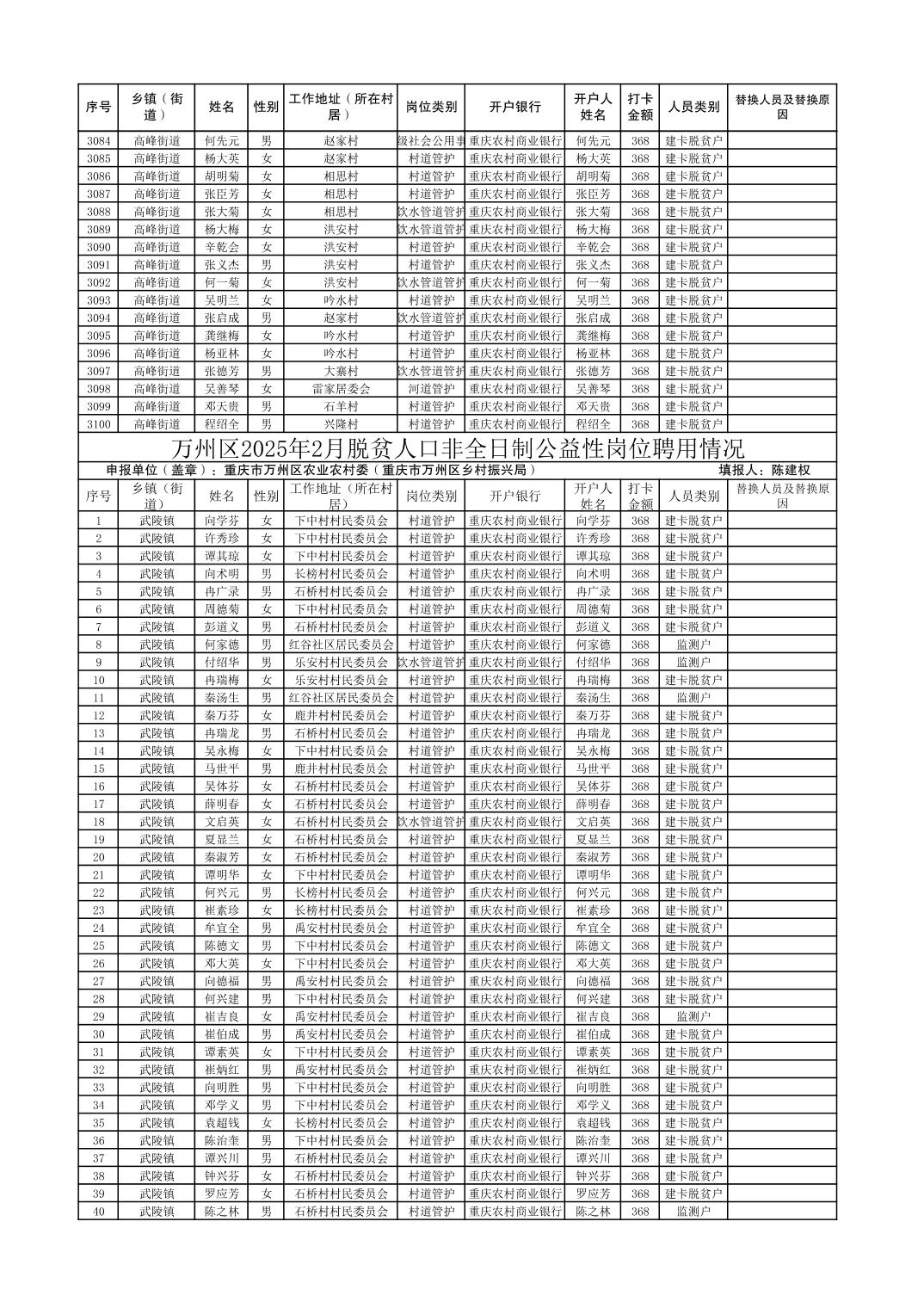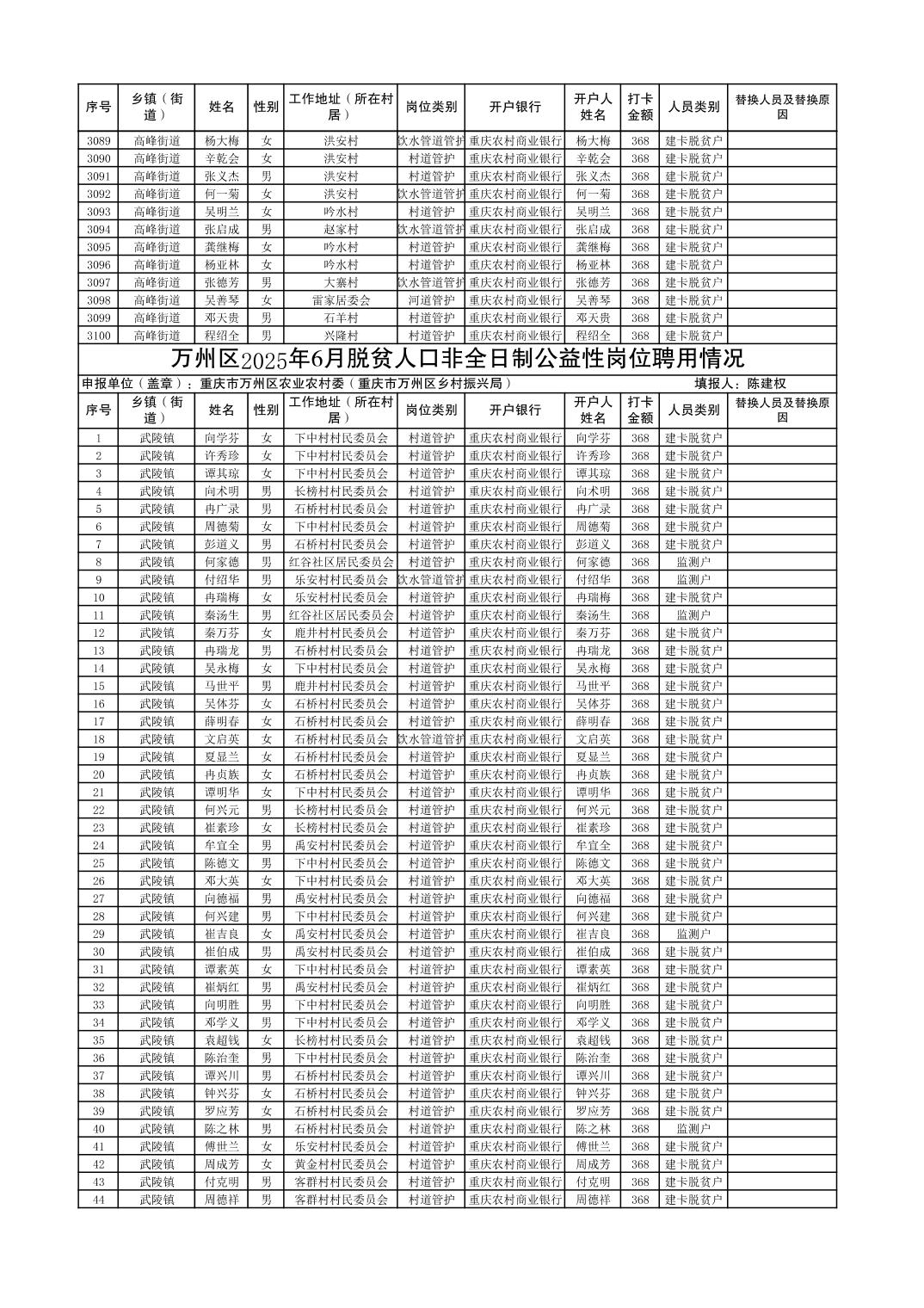 在线博彩平台 2025年1-6月脱贫人口非全日制公益性岗位聘用情况