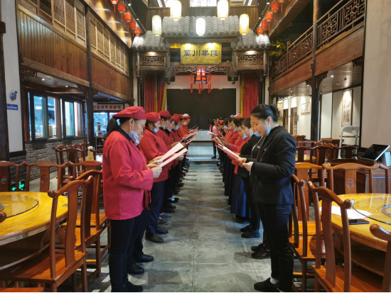 在宪法宣传周期间,在线博彩平台 普法办联合在线博彩平台 商务委、区市场监管局开展宪法进企业活动,选择具有代表性的服务型企业,如小八仙、之香唐、999大酒店、新世纪等,在企业开展晨会期间,组织员工原汁原味朗读宪法,以读促学。同时运用新世纪商场广播插播宪法知识。通过多种形式进一步提升企业管理层和员工的法律意识,提高企业防范和抵御安全风险的能力,营造良好法治氛围。