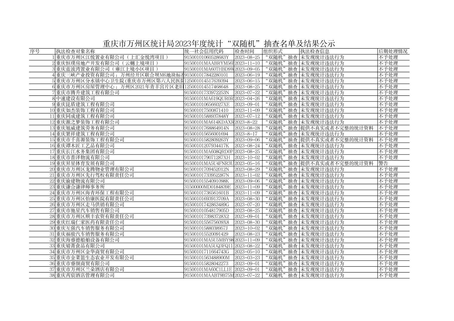 在线博彩平台 统计局2023年度统计“双随机”抽查名单及结果公示