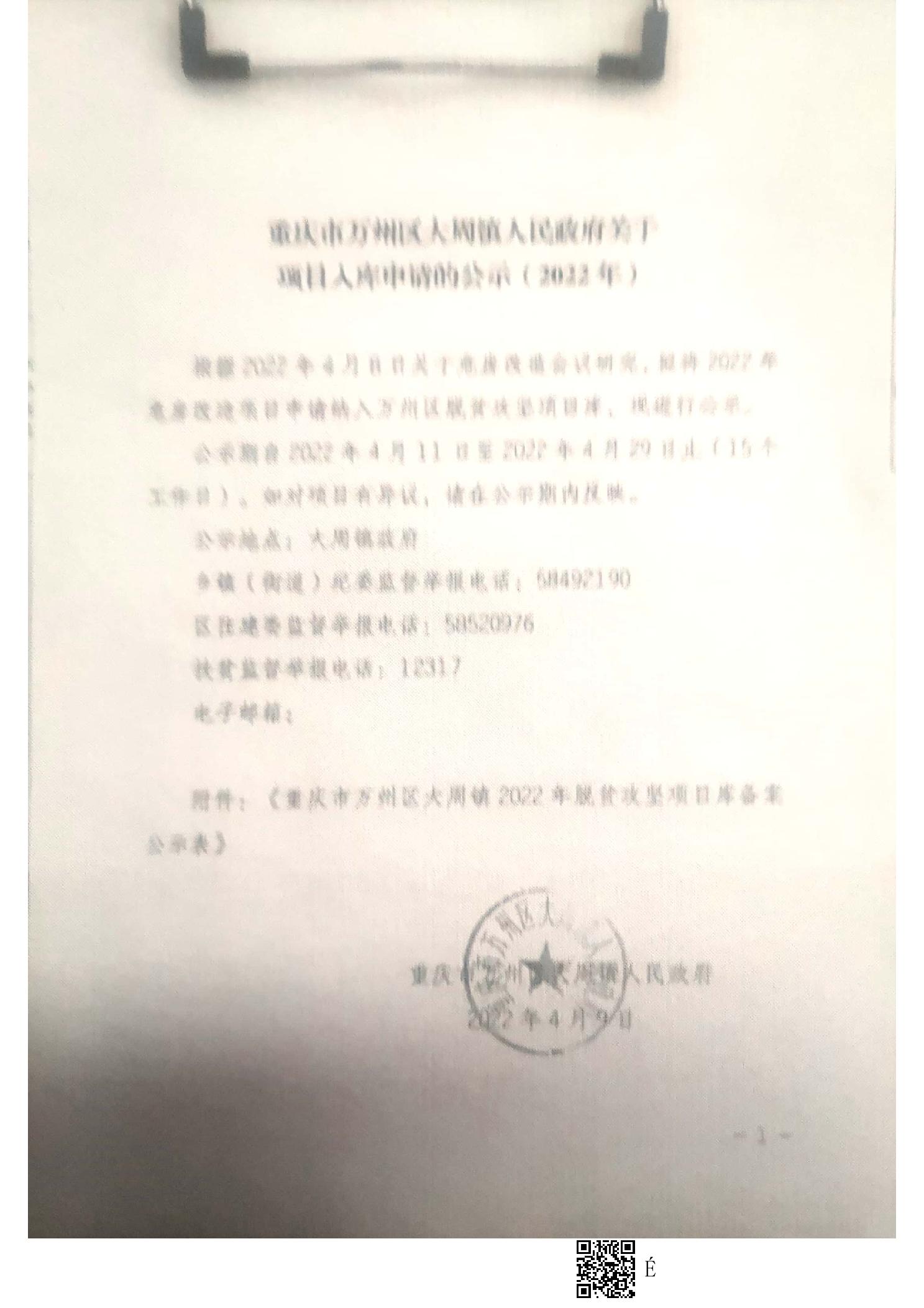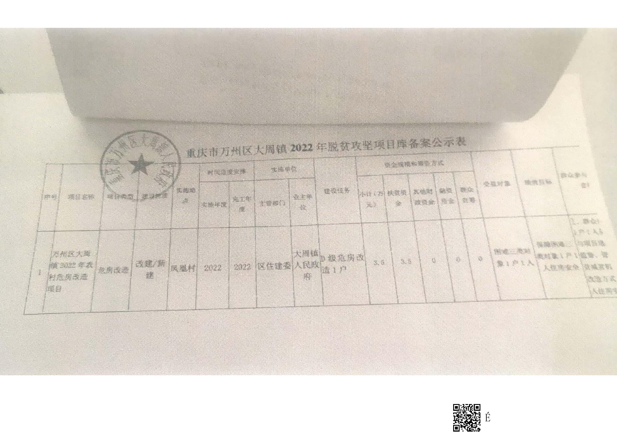 在线博彩平台 大周镇2022年危房改造的公示栏