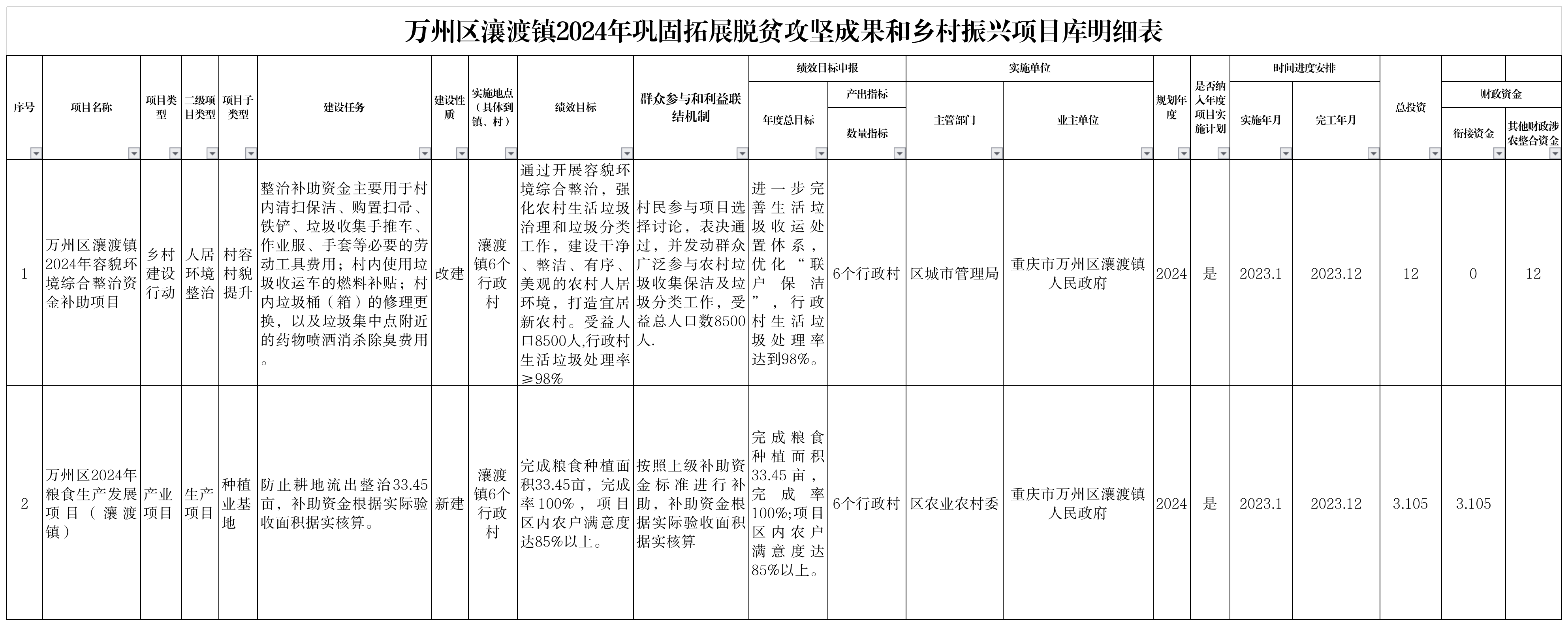 在线博彩平台 瀼渡镇2024年巩固拓展脱贫攻坚成果和乡村振兴项目库明细表