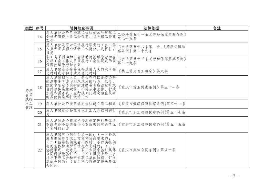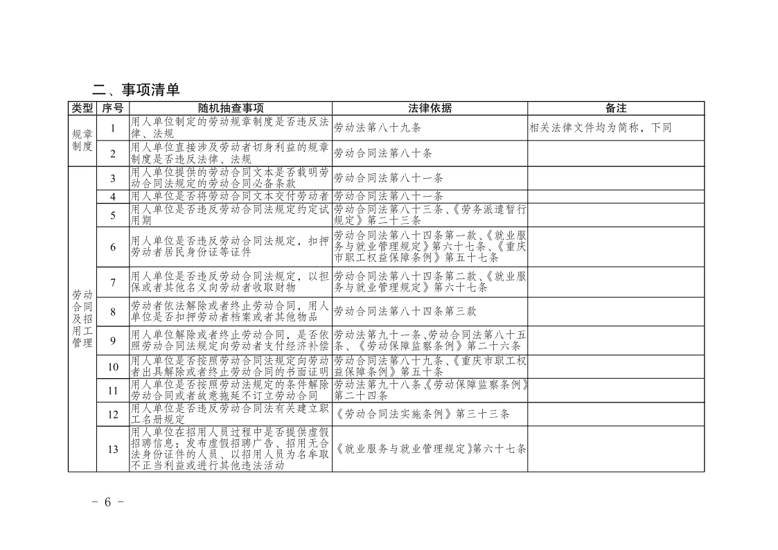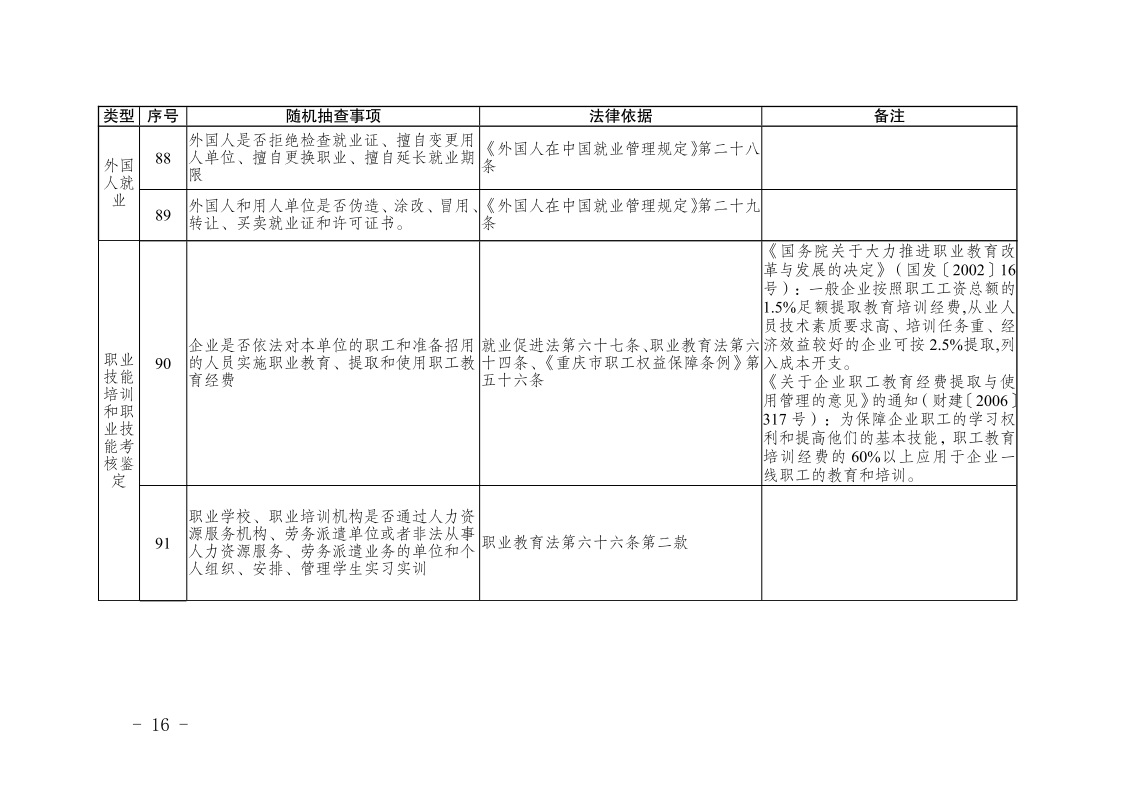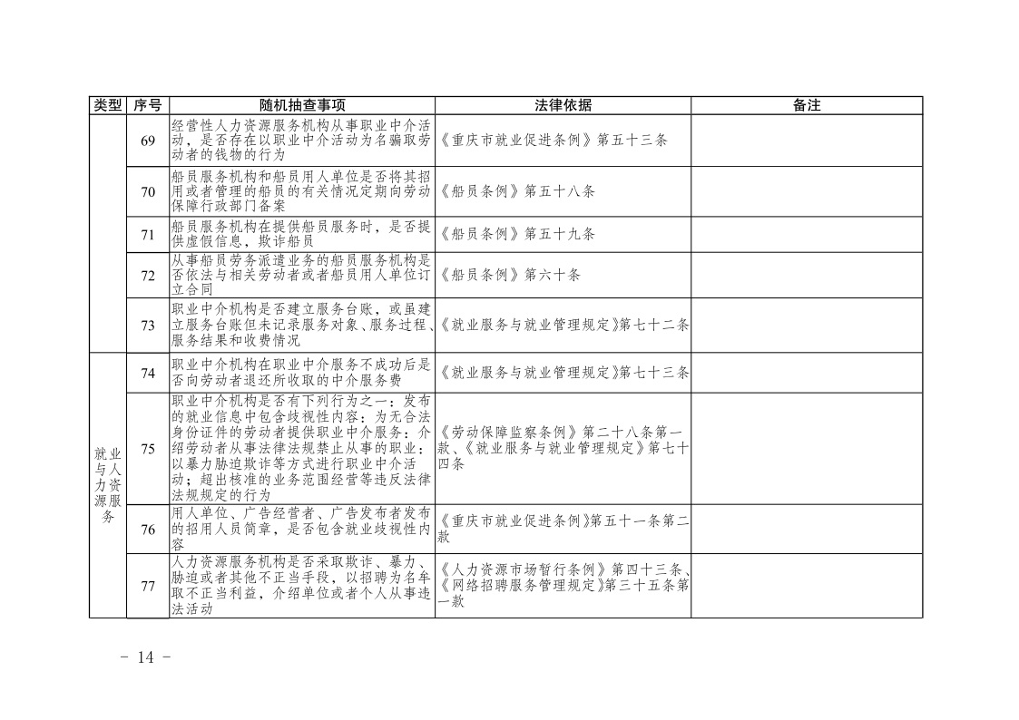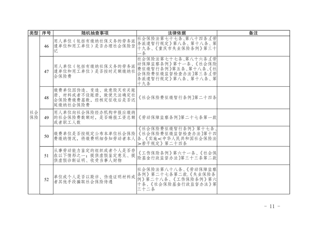 重庆市人力资源和社会保障局关于印发《重庆市人力资源和社会保障领域随机抽查事项清单(第三版)》的通知