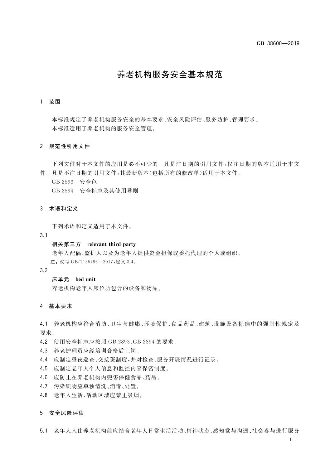 养老机构服务安全基本规范
